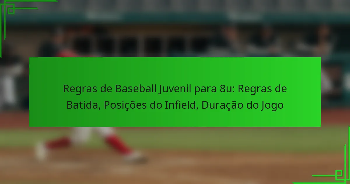 No basebol juvenil 8u, as regras são concebidas para promover uma atmosfera divertida e educativa, priorizando a segurança e o jogo limpo. As diretrizes de batting, as posições do infield e a duração do jogo são estruturadas para ajudar os jovens jogadores a desenvolverem as suas habilidades e compreensão do jogo. Com papéis específicos para…