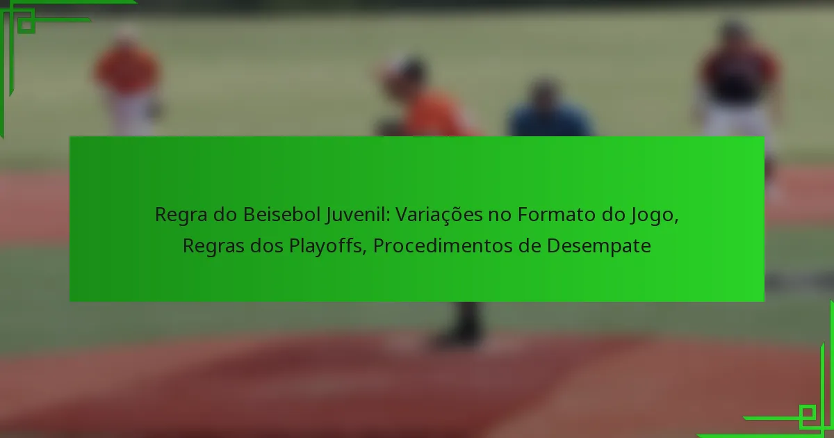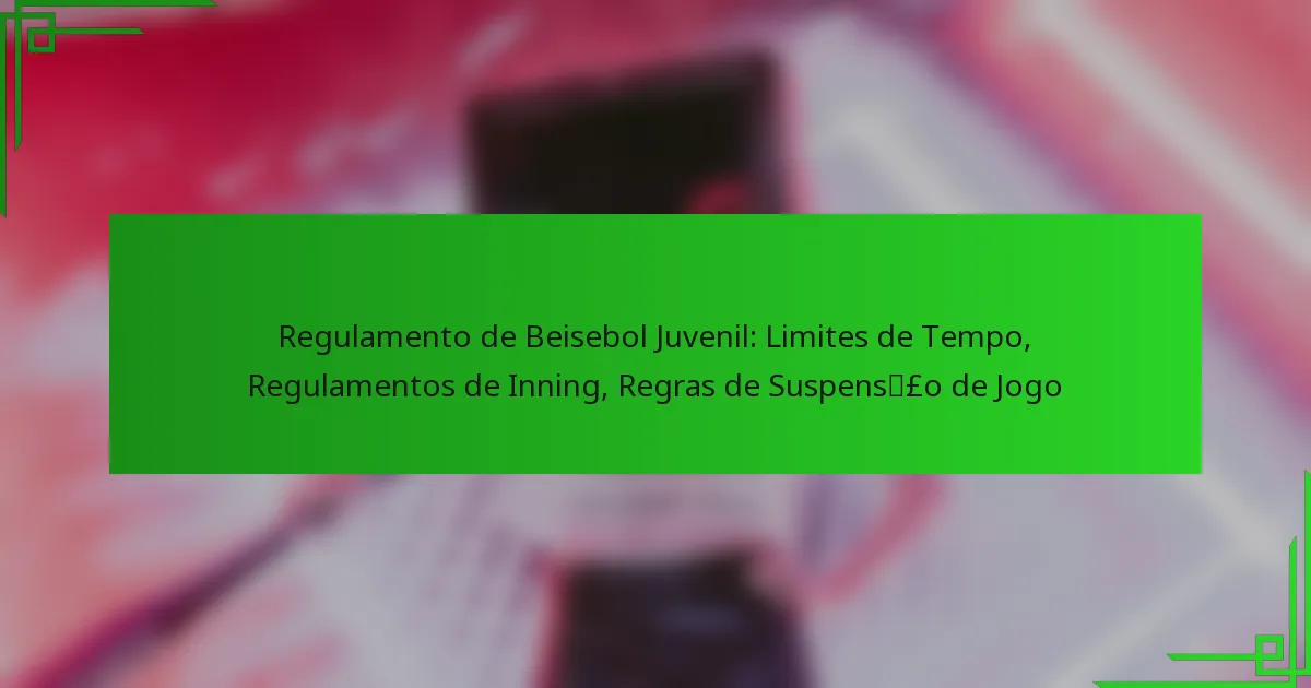 O beisebol juvenil incorpora regras específicas relacionadas a limites de tempo, regulamentos de entradas e suspensões de jogos para melhorar a experiência dos jovens jogadores. Os limites de tempo geralmente variam de 1,5 a 2 horas, promovendo o envolvimento enquanto considera as necessidades de desenvolvimento dos atletas. Os regulamentos de entradas variam conforme o grupo…