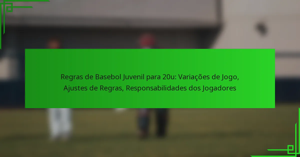 No basebol juvenil 8u, as regras são concebidas para promover uma atmosfera divertida e educativa, priorizando a segurança e o jogo limpo. As diretrizes de batting, as posições do infield e a duração do jogo são estruturadas para ajudar os jovens jogadores a desenvolverem as suas habilidades e compreensão do jogo. Com papéis específicos para…